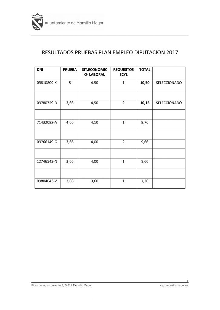Tras la aplicación de un baremo objetivo los resultados de la selección de personal son: