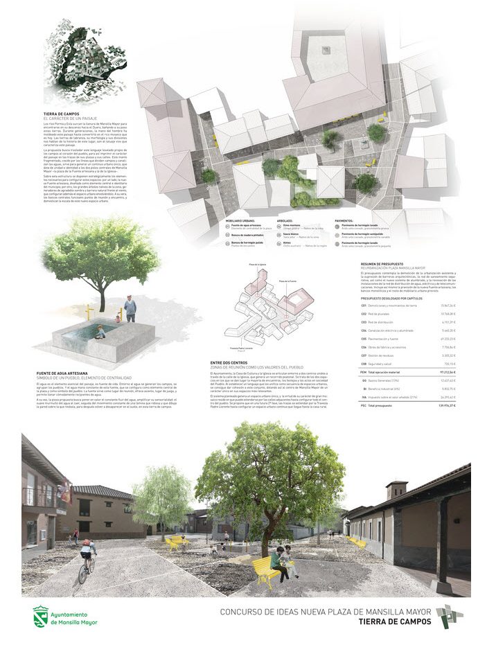 1 • Declarar ganador a la propuesta: «TIERRA DE CAMPOS», representada por IÑIGO TUDANCA ACEDO. El jurado valora la sensibilidad del pavimento, su adaptación como sistema y la renovada lectura del nuevo pilón de la plaza. Resultó además votada mayoritariamente por los vecinos.